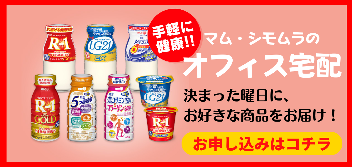 マム・シモムラでは明治の宅配商品をオフィスまで配達いたします!