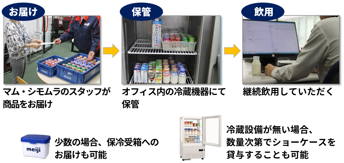 マム・シモムラでは明治の宅配商品を通じて、「従業員の皆様の健康を支えたい!」という御社の願いを叶えます。